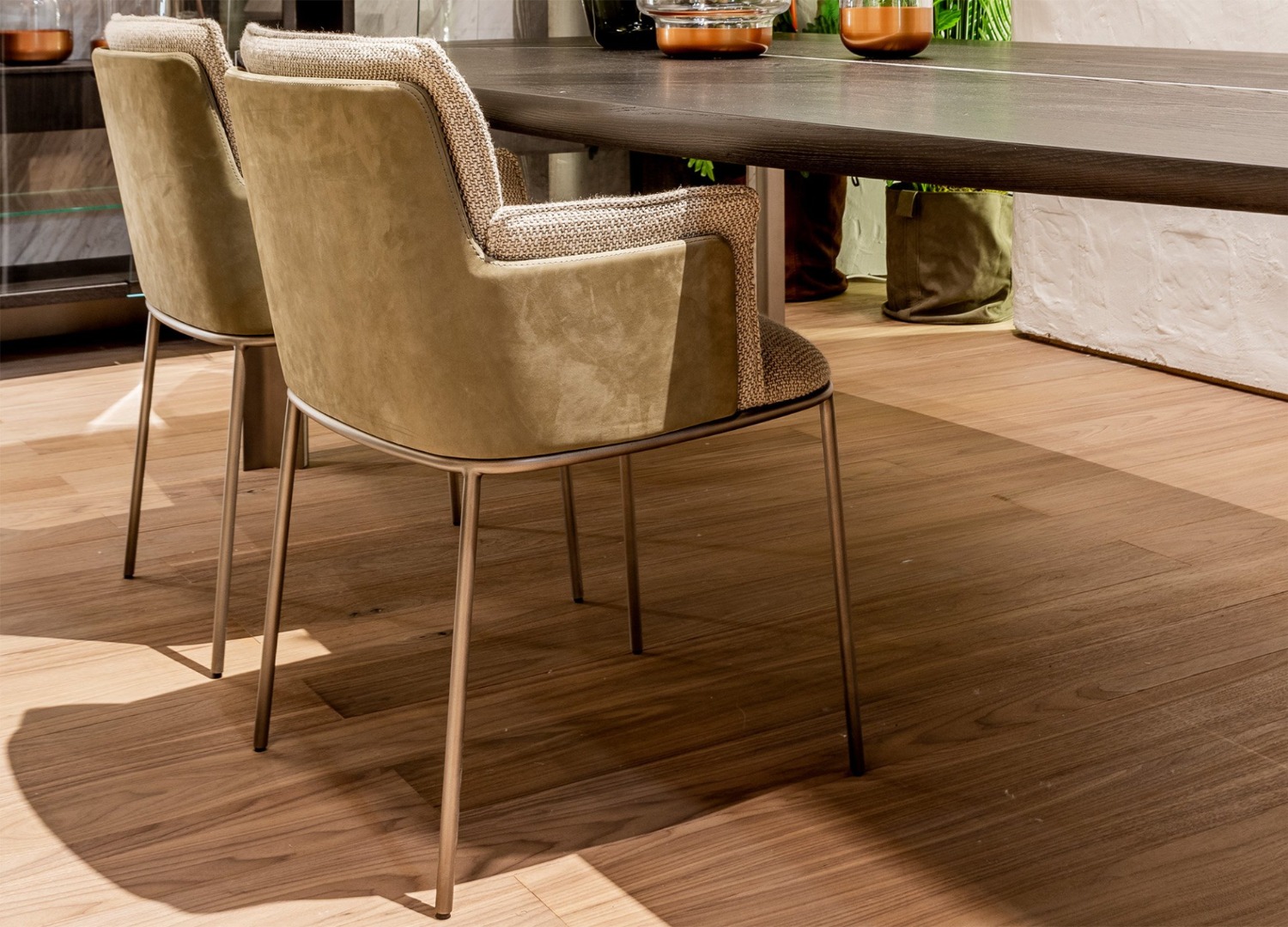 Kadınsı ve erkeksi formları ustalıkla harmanlayıp içinde barındıran Cholet Sandalye, düzenli ve formal, çağdaş modern mekânlar söz konusu olduğunda son derece provokatif, salaş ve bohem görünüme sahip bir tasarım. Bu konfor odaklı karakter, onu rahat-şık ortamlar için hemen göze çarpan bir seçenek haline getiriyor. Sırt ve kolçak modülünü oluşturan kabuksu metal destek, nubuk veya deri kaplama alternatiflerine sahip. Yumuşak dolgulu oturma fontu, ince metal çubuklar üzerinde yükseliyor. Tasarım yaklaşımı açısından ele alındığında Cholet Sandalye, yumuşak ve sert, organik ve köşeli formlar arasındaki sonsuz mücadelenin arabulucusu konumunda. Zıt kavramlar bu tasarımın bünyesinde savaşmayı bırakıp adeta birbirlerine destek olmayı öğreniyorlar. Ürün, sağlam metal kabuğun dışına taşan dolgulu minderler sayesinde son derece davetkâr bir karaktere bürünüyor. Kumaş, deri, nubuk ve metalde renk seçenekleri mevcut. Yoğunlukla ev-ofis ve yemek odalarında tercih edilen Cholet Sandalye, konut ve otel projelerine mükemmel uyum sağlıyor.
