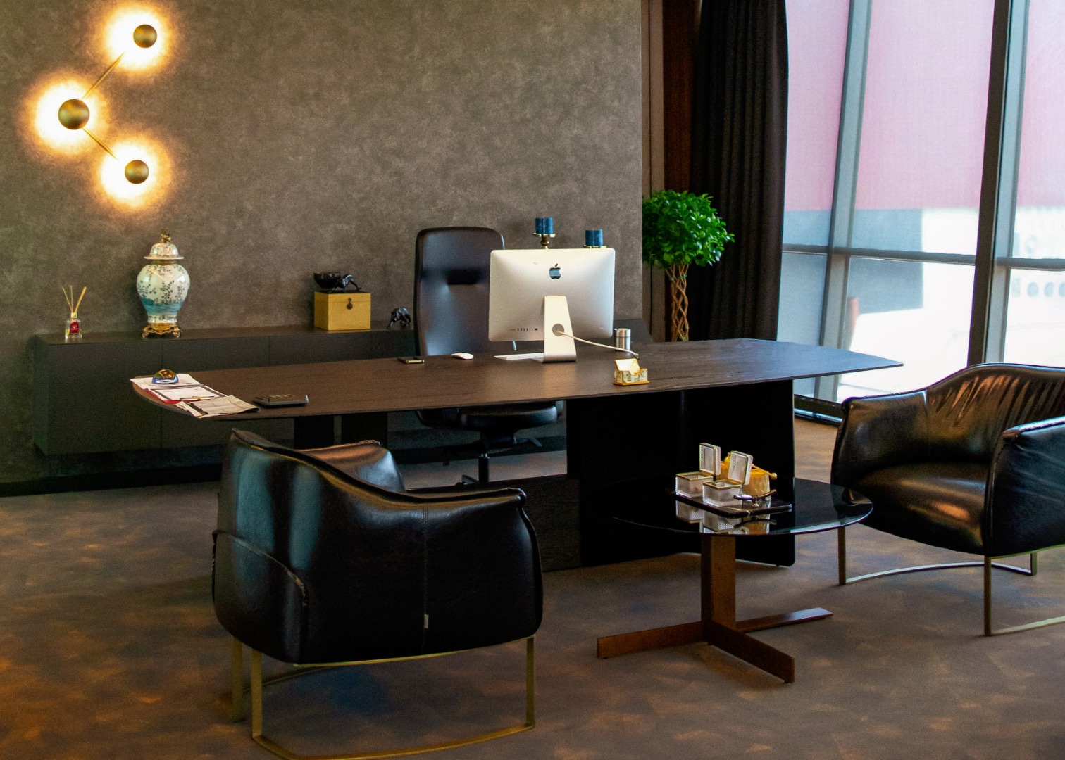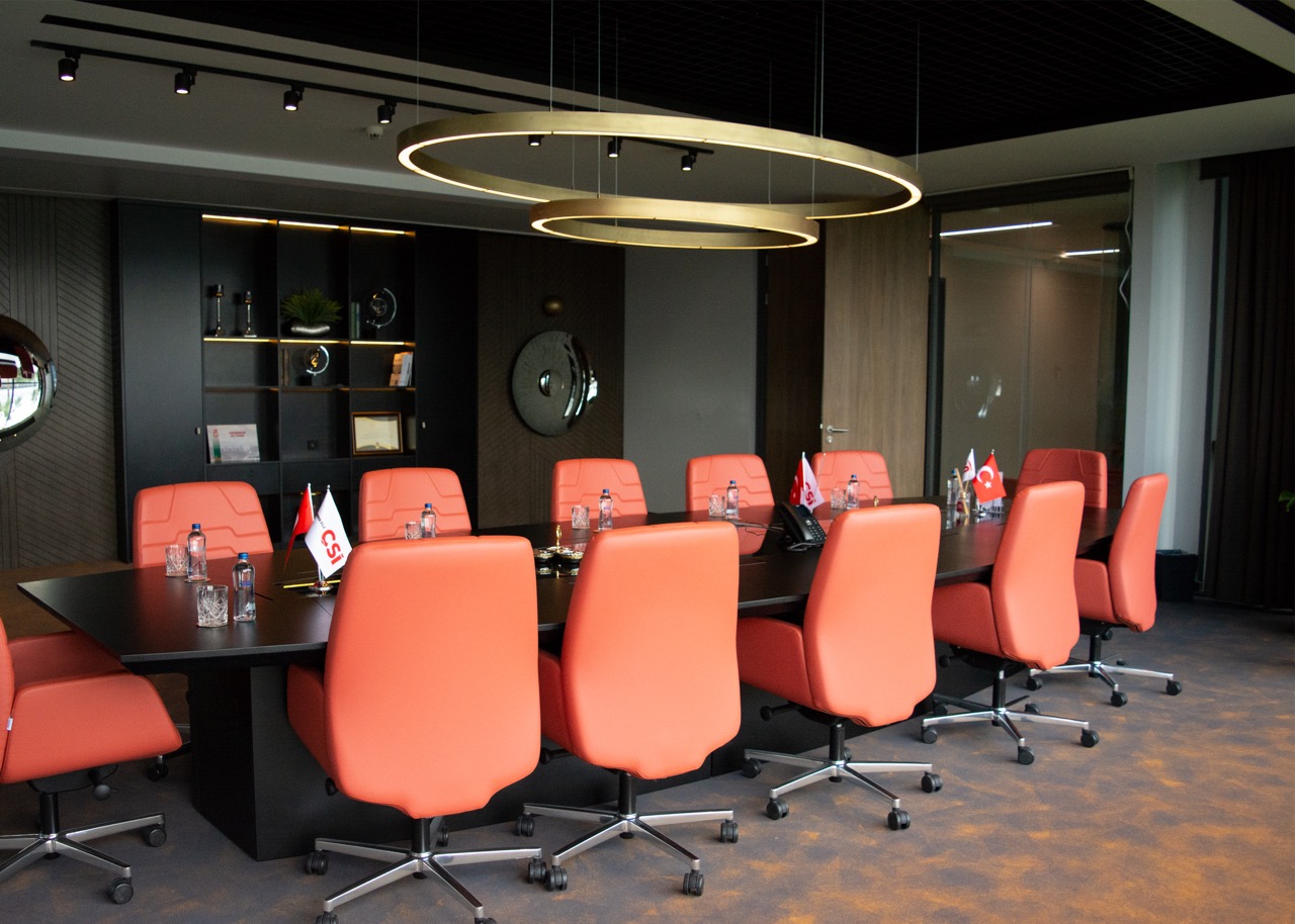 Proje kapsamında yer alan hareketli mobilya çözümleri, Nossa Mobilya tarafından gerçekleştirilmiş; mekânın mimari diliyle uyumlu, fonksiyonel ve yüksek kalite standartlarına sahip üretimler ile bütünlük sağlanmıştır. Detaylarda kurulan hassas denge, idari yapının kurumsal kimliğini destekleyen bir atmosfer sunar.