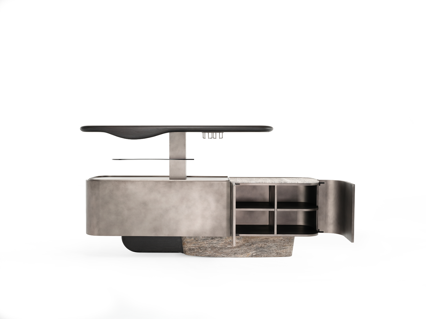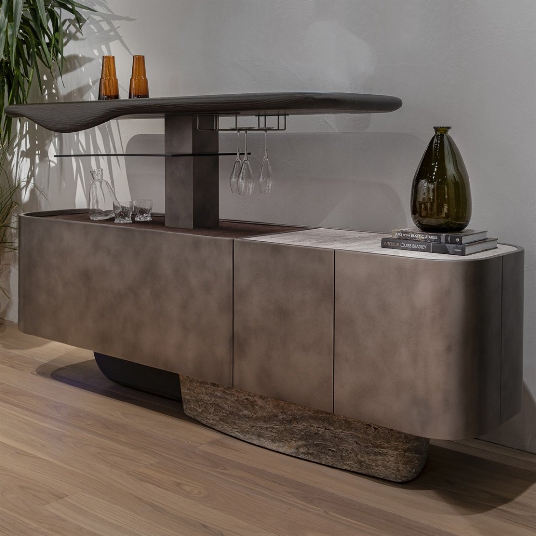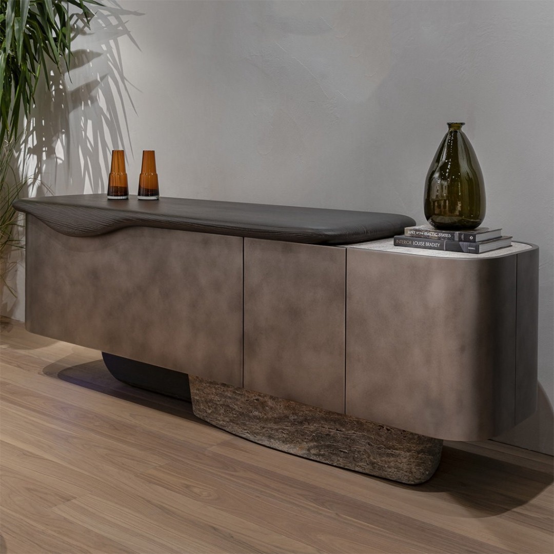 With Dolmen Sideboard, add a remarkable and stunning addition to any dining room or living space. This extraordinary piece of furniture boasts a body-shaped, gigantic marble or wooden column with legs, giving the impression of an epic masterpiece with its sculptural appearance.The Dolmen Sideboard is a true testament to the artistry and craftsmanship of its designers. The intricate details of the body-shaped leg are expertly crafted and offer a unique aesthetic.The top of the Dolmen sideboard is made of high-quality wood, providing a beautiful and durable surface to display your favorite decor items or serve dishes. The combination of the wooden top and the sculptural body-shaped column creates a striking contrast for capture by anyone who enters the room.Experience the perfect blend of artistry and functionality with the Dolmen Sideboard. Its distinctive design, material harmony, and outstanding craftsmanship make it a must-have to pamper your home.