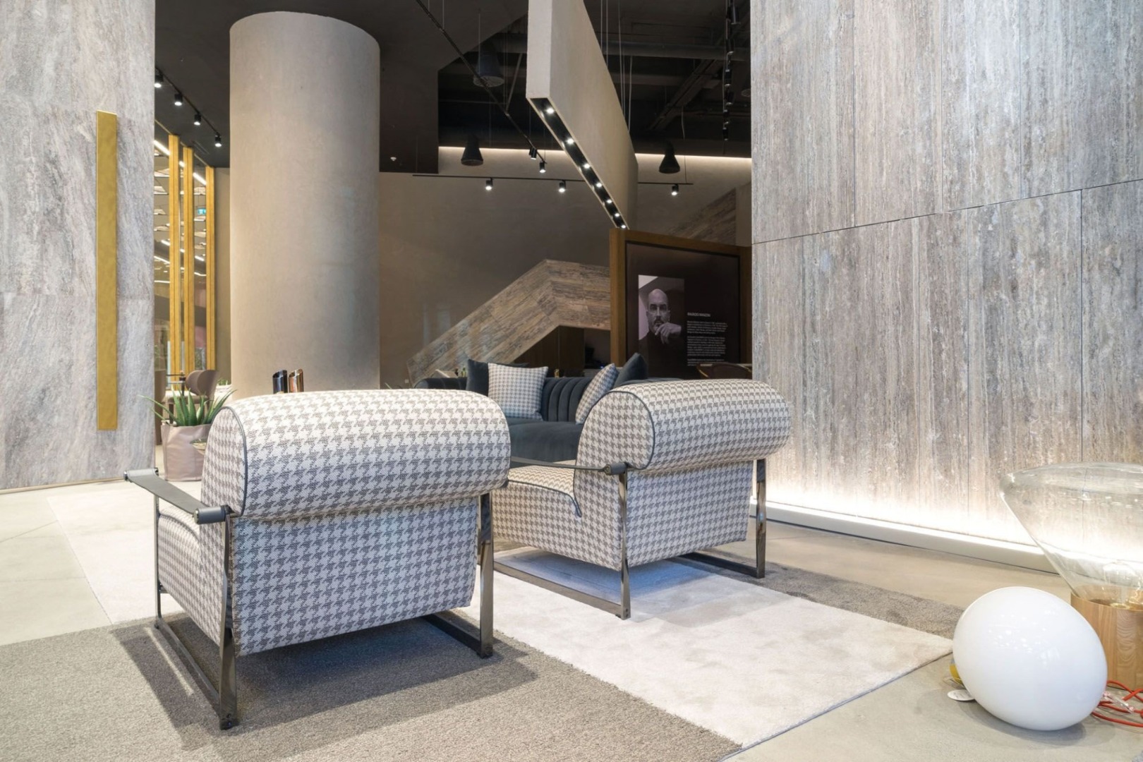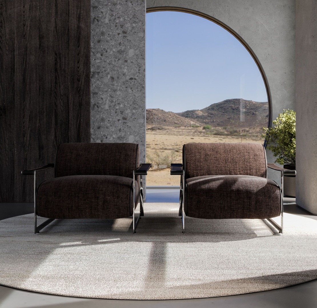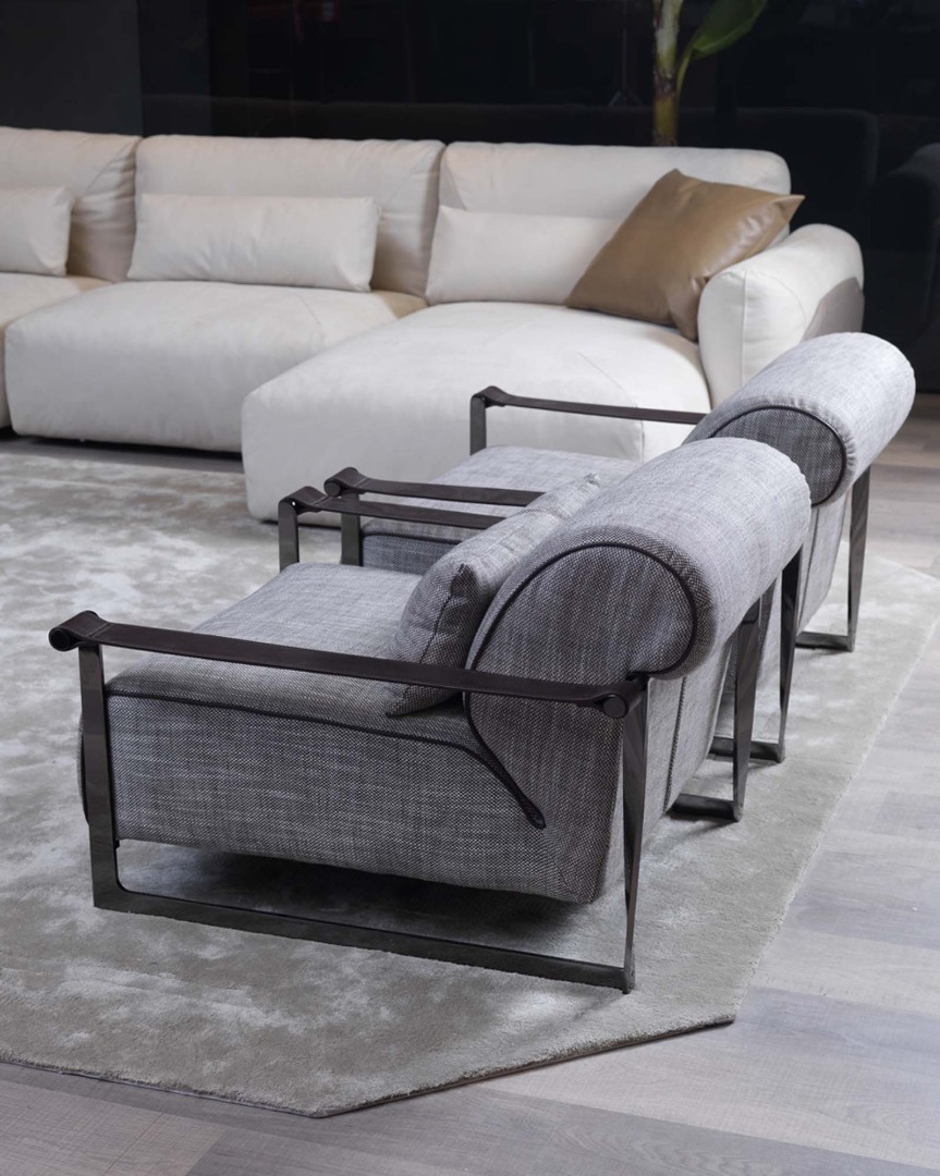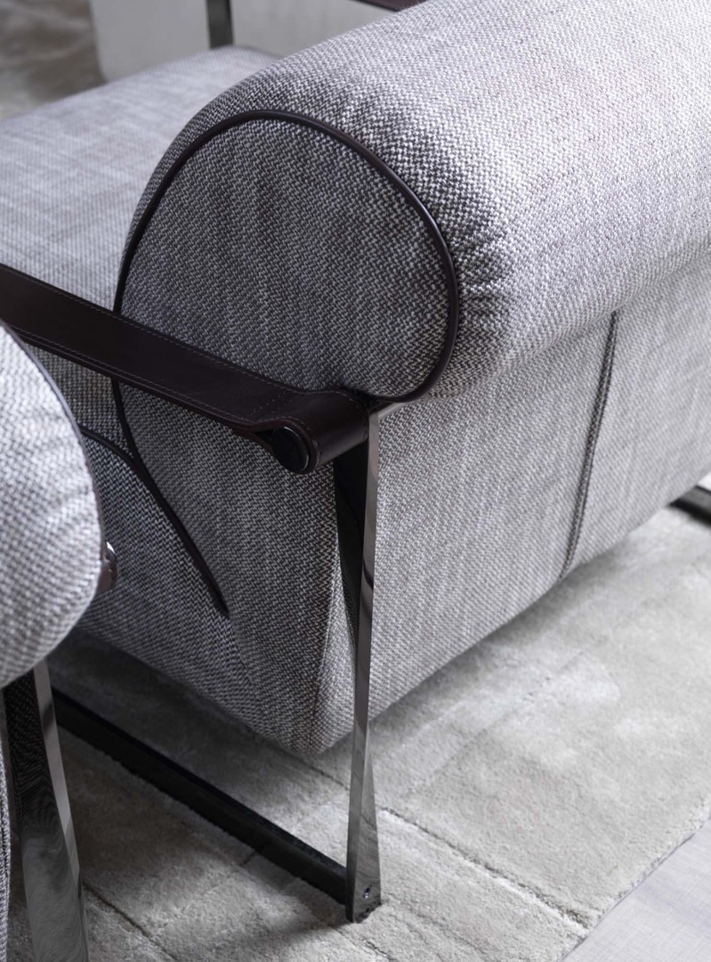 With its nod to modernist design, the Annysa armchair expresses its form with an Italian twist, much like the distinctive character of its metal frame. The Annysa is defined by its smooth contoured curves, which are complemented by its iconic leather armrests, a design element both functional and beautiful. Aesthetically pleasing from every angle, the Annysa armchair is a success for every environment.
