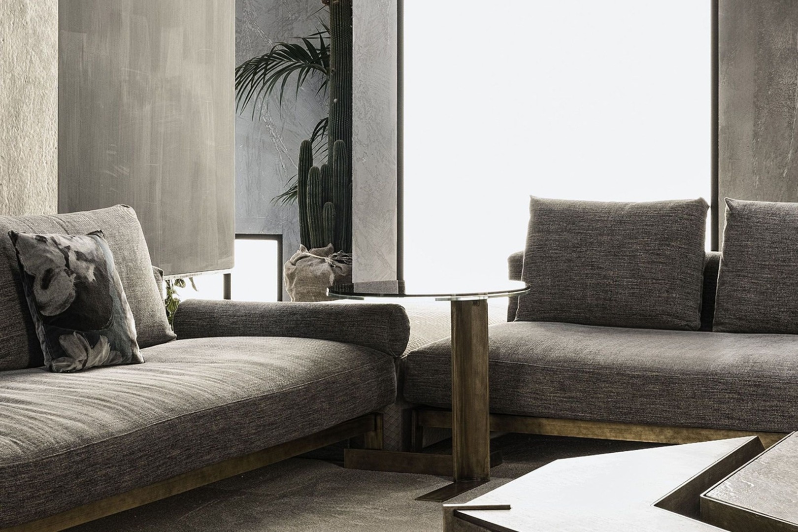 Life is composed of a perfect combination of different pieces. Atlantide Coffee & Side Table which is designed with an inspiration from nature is shaped by the striking harmony of glass and aged brass to combine different pleasures in a whole, detailed with colored metal options.