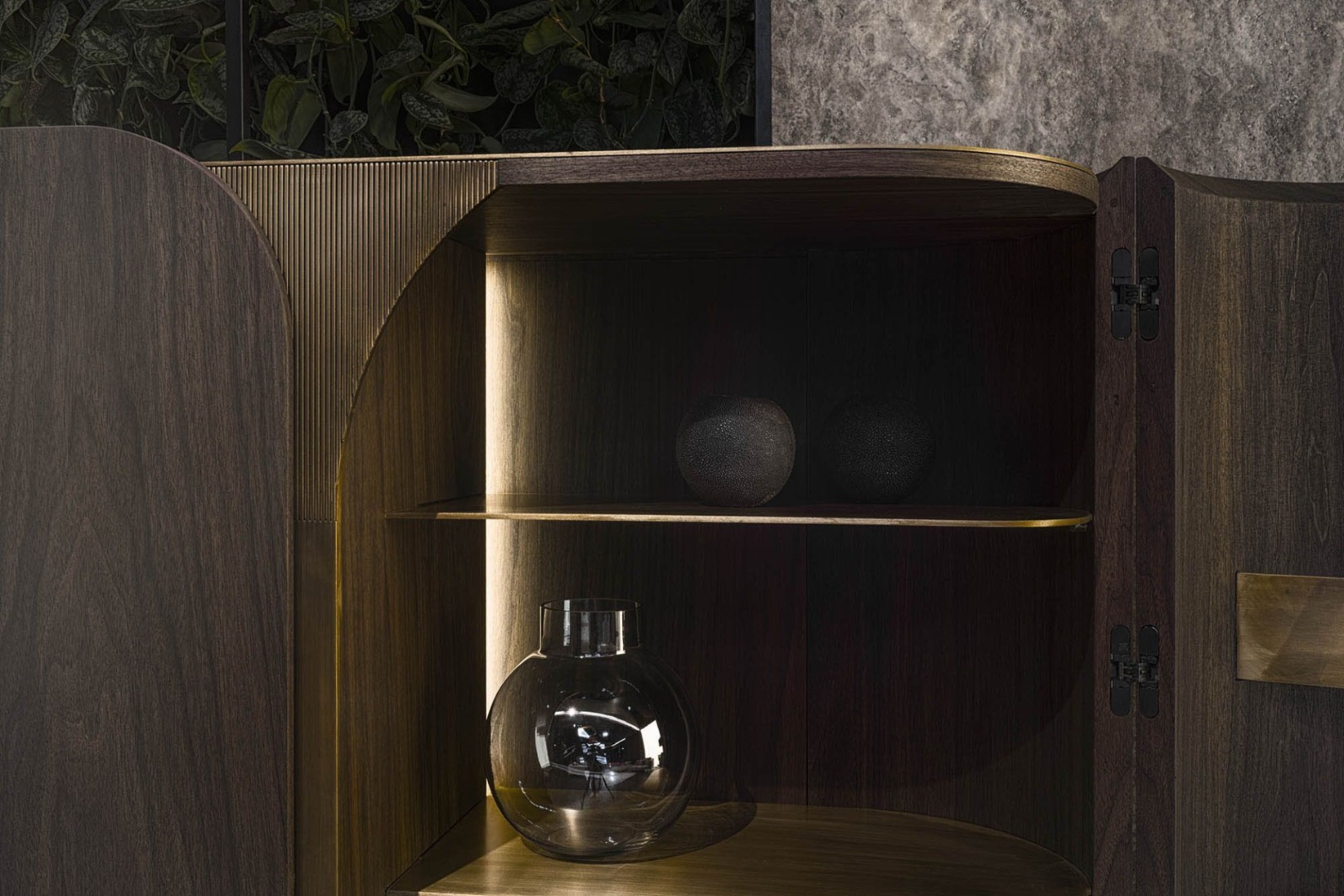 All beauties are hidden in life. Boji Cabinet in which walnut cover and aged brass meet in minimal lines is presented to you as an unmatched design which hides chic and elegant lines in it with lace drawers and led lightings.