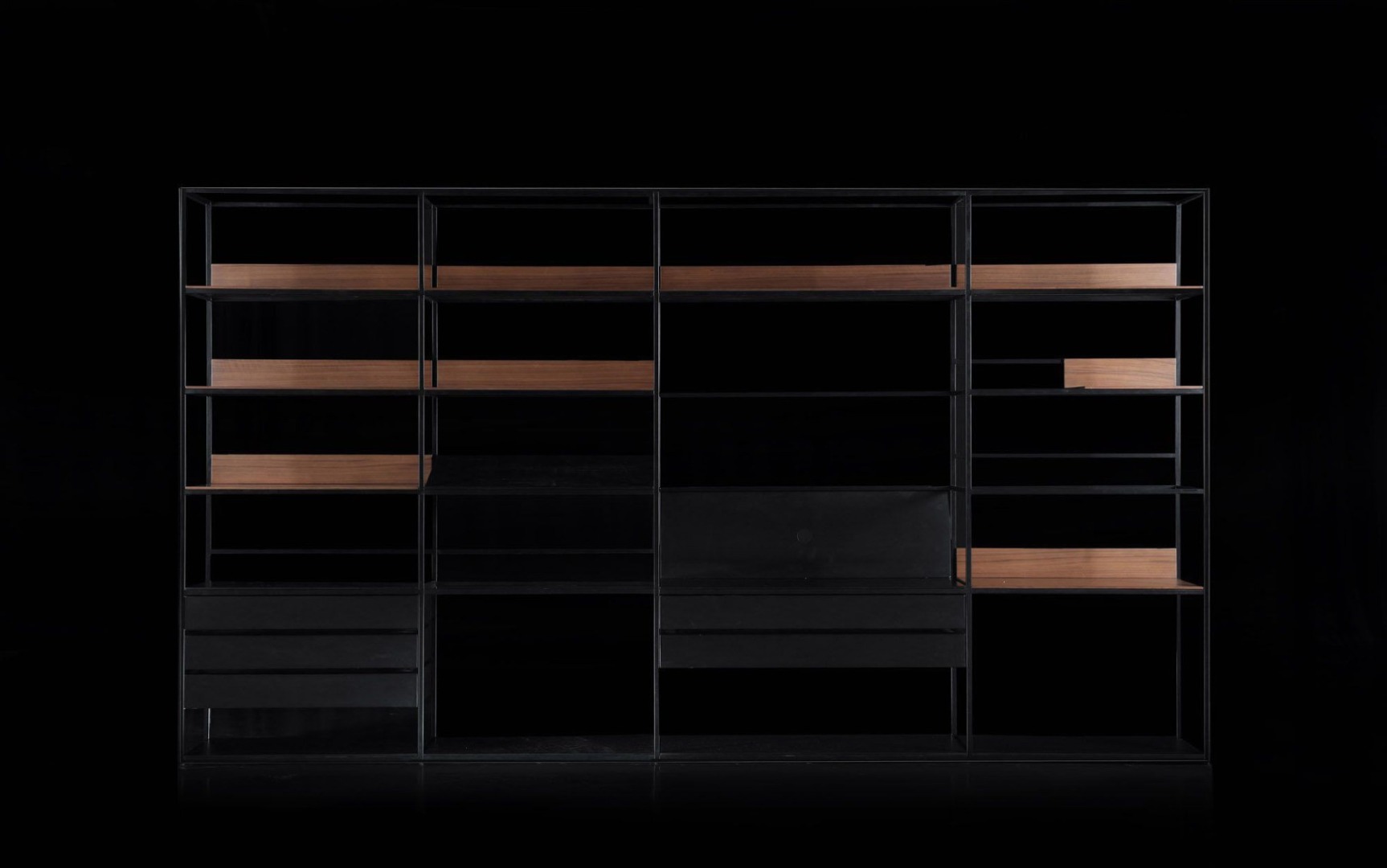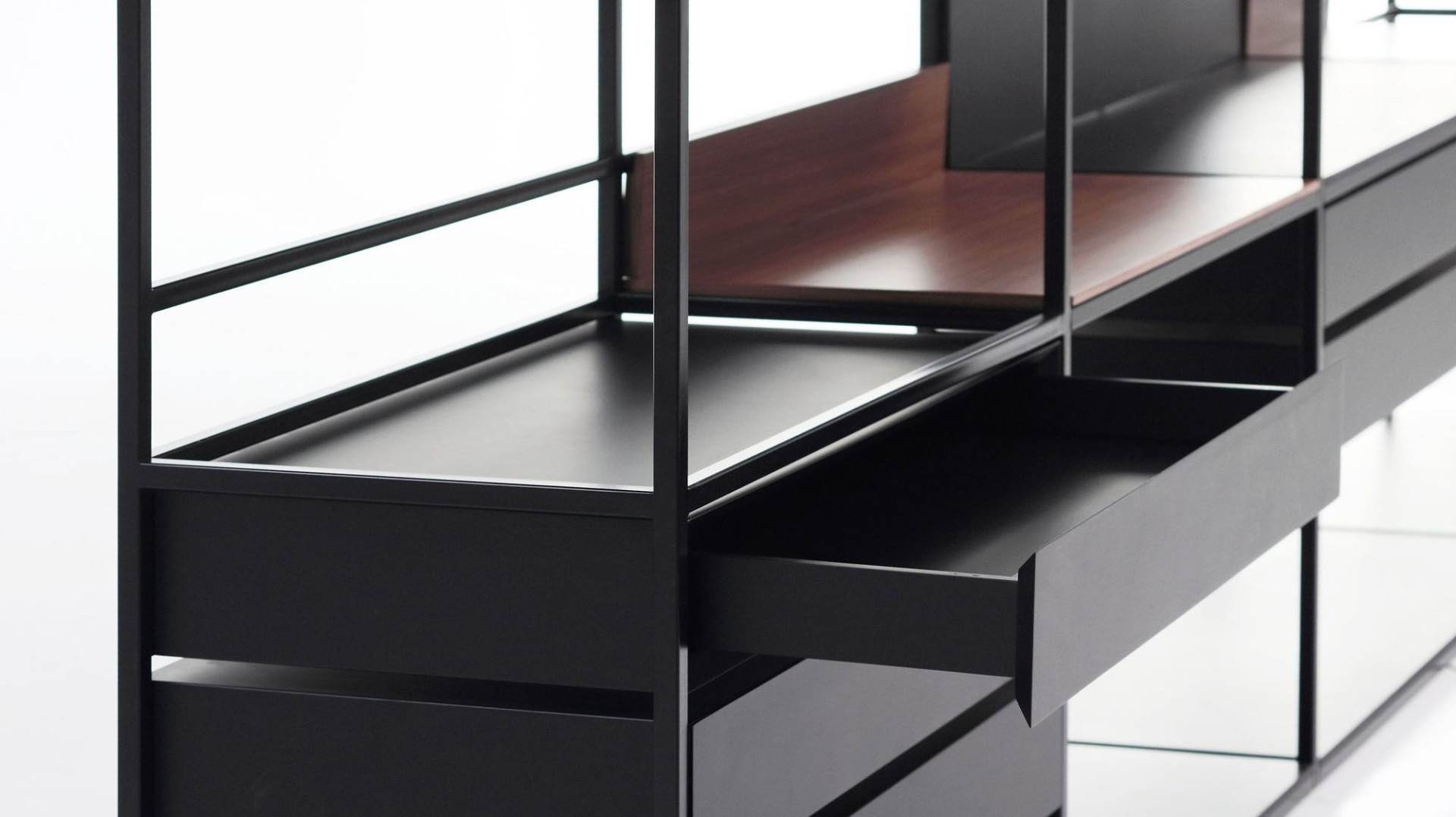 Deep Wall Unit will find naturally its place in a contemporary living room. Against a wall either by way of separator of space in a big loft, Deep invites to hide small objects or precious documents in sliding drawers, or on the contrary, to put in the light of all the most beautiful objects.