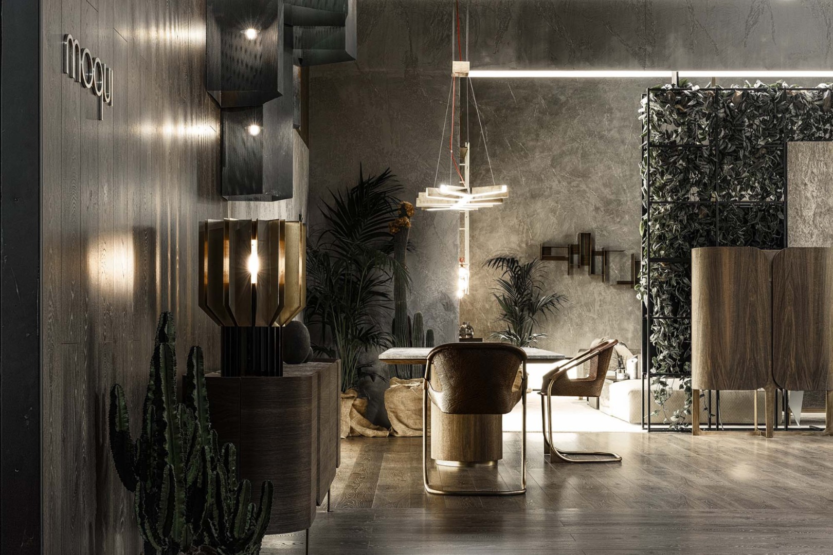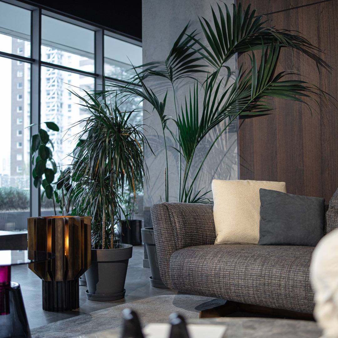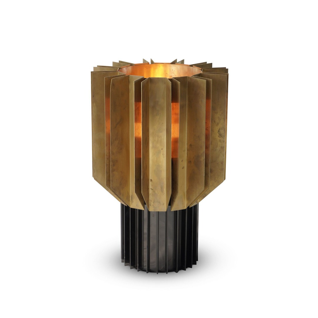 The soft effect of the light is enveloped by metal plates. Delta Lighting, designed to be used on console or floor, with its detailed craftsmanship and dazzling elegance, will illuminate your inspirational journey.