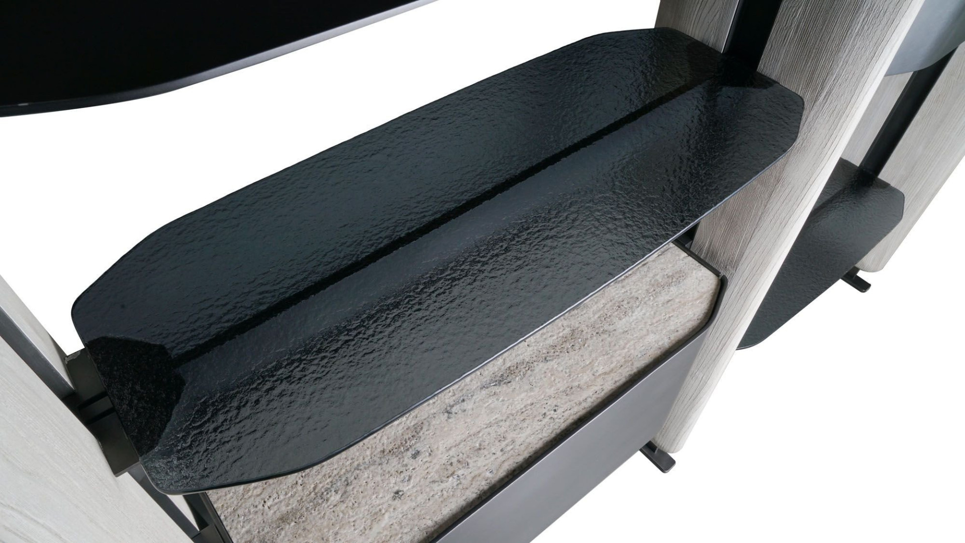 A simplicity that will leave its mark on each and every moment… Uniting light painted chestnut with metal and fusion glass, Dolmen takes its place in your life as timeless lines.