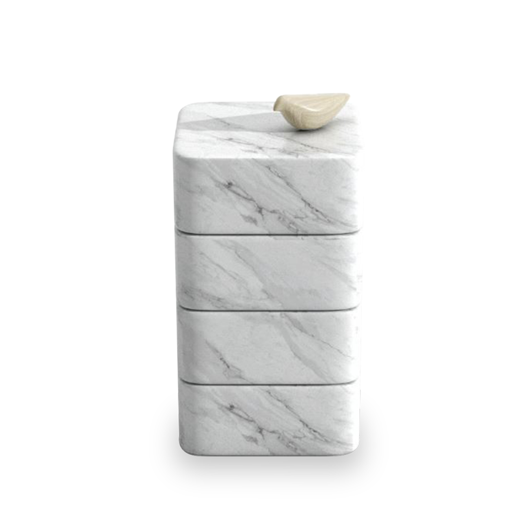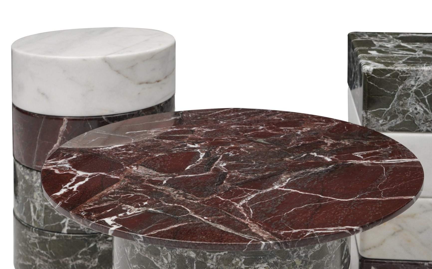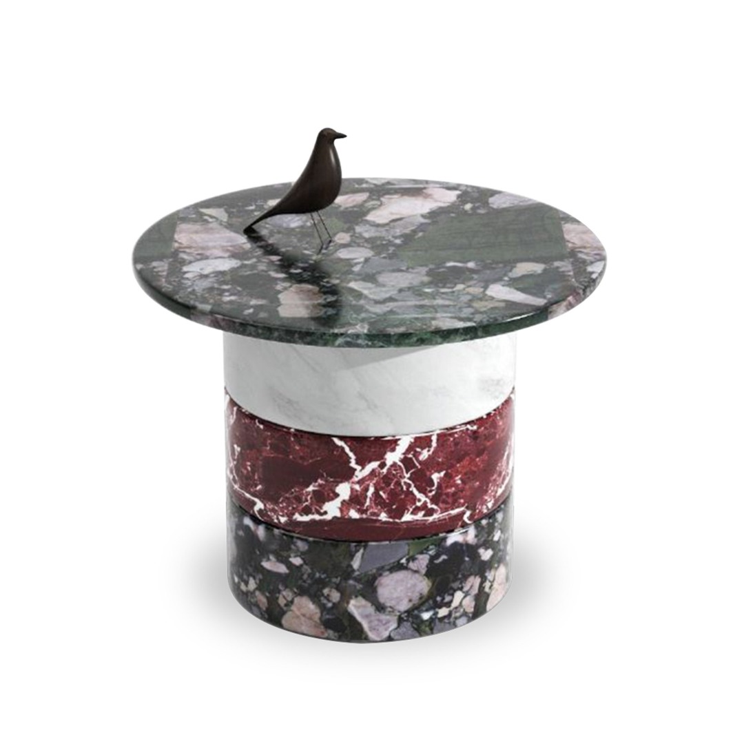 Evocative of the Greek column orders, Luna Coffee Table stands upon a medley of solid marble blocks with interlocking Lego-like modules and comes in three different forms with various combination options. The marble is obtained from the abundant quarries of Anatolia, a land blessed with one of the largest and excellent quality natural stone reserves in the world, and is substitutable with locally produced travertine. The concrete materiality of the design delivers a tactile and worldly offset to the soft surfaces the surrounding seating units provide. The natural veining of the modules lends each table a distinctive character. Luna Coffee Table A has an additional tabletop module with the same interlocking properties and marble/ travertine options. Luna Coffee Table B can be used as a part of a cluster, recreating the heights according to diverse needs. Luna Coffee Table C is the cuboid version of the unit B. The modular design enables an array of functions, a single coffee table or a cluster of low tables placed in the center of any furniture set or a single-unit side table as well as an assertive plinth for objets d'art.