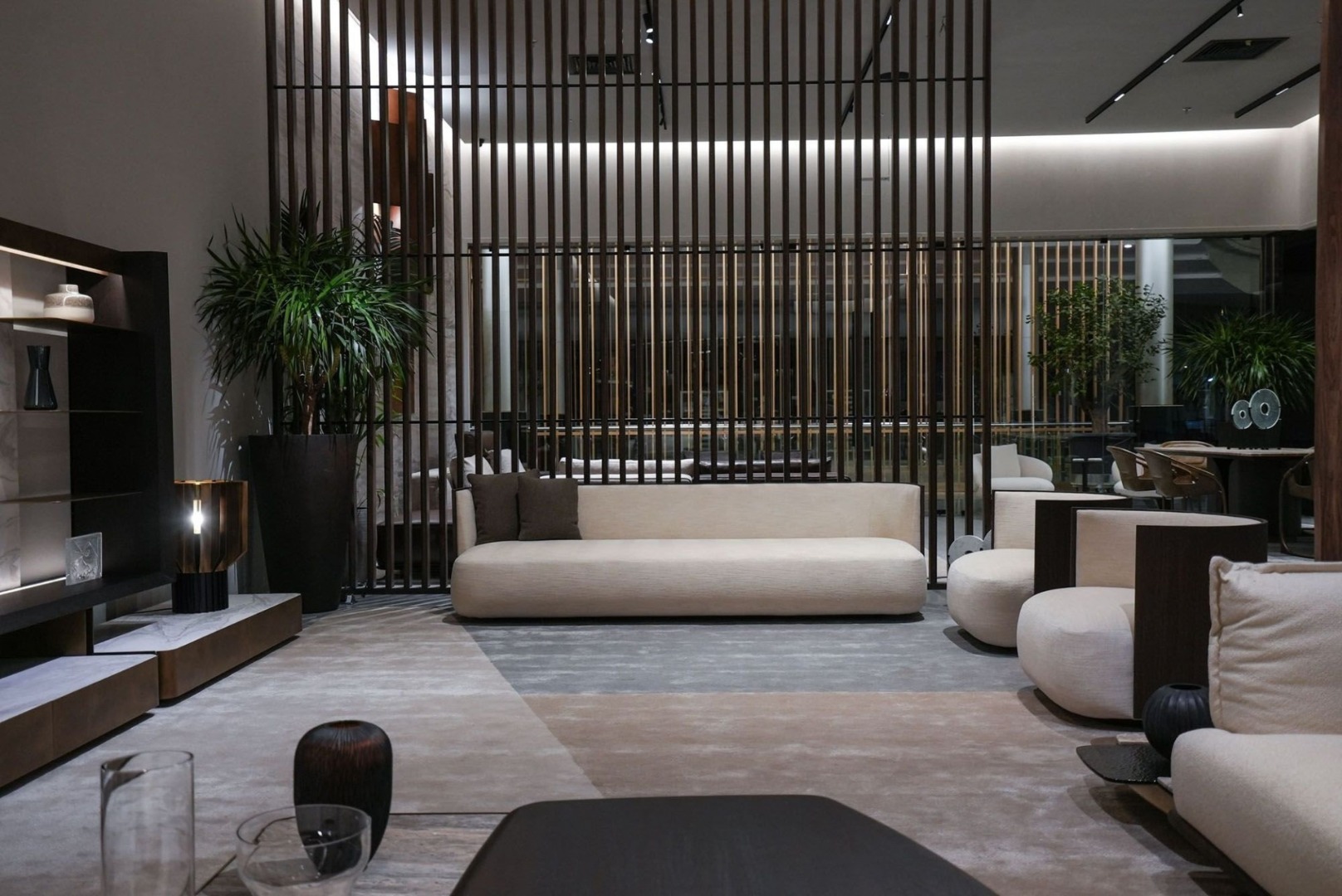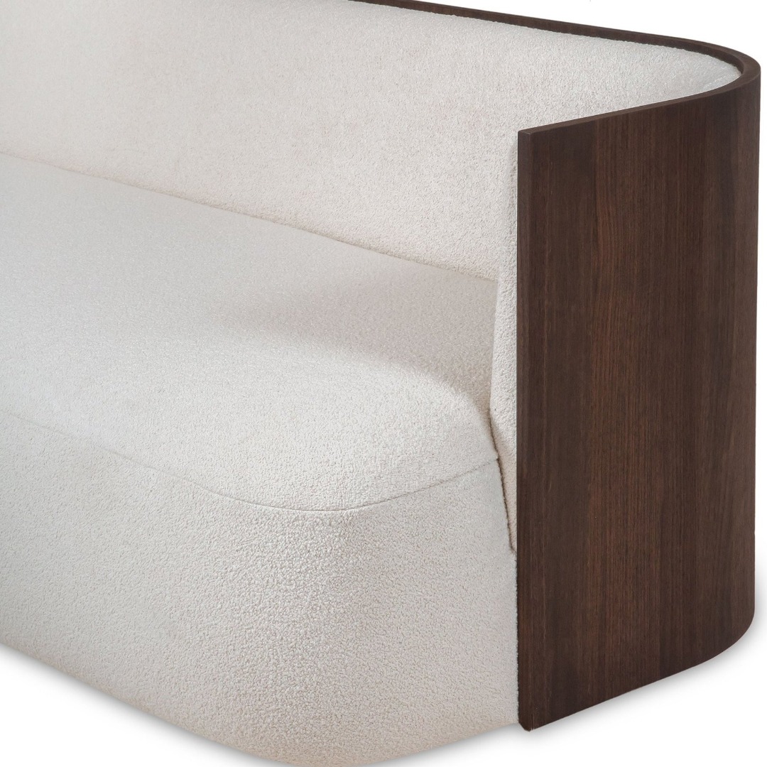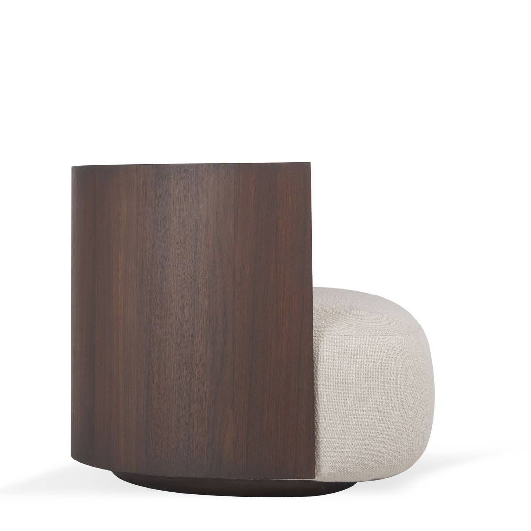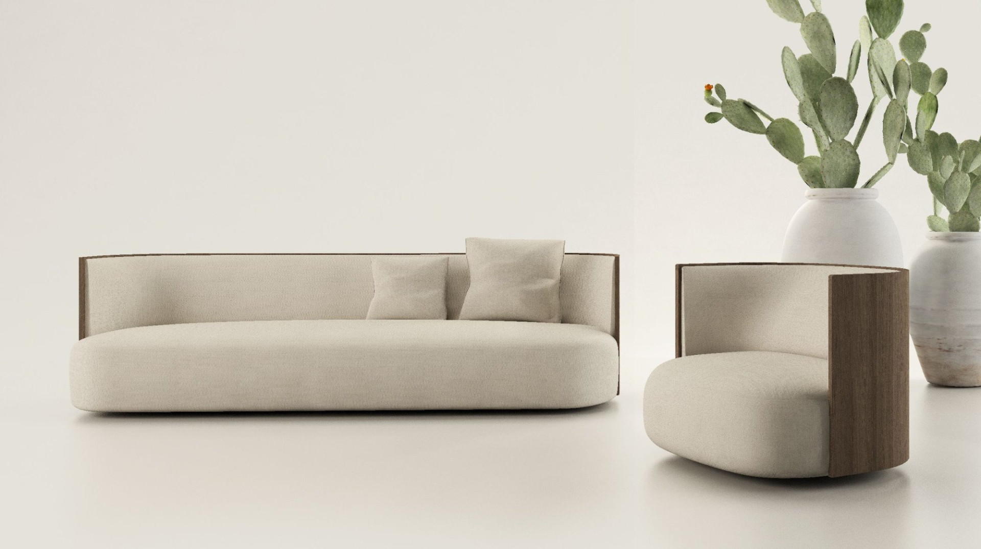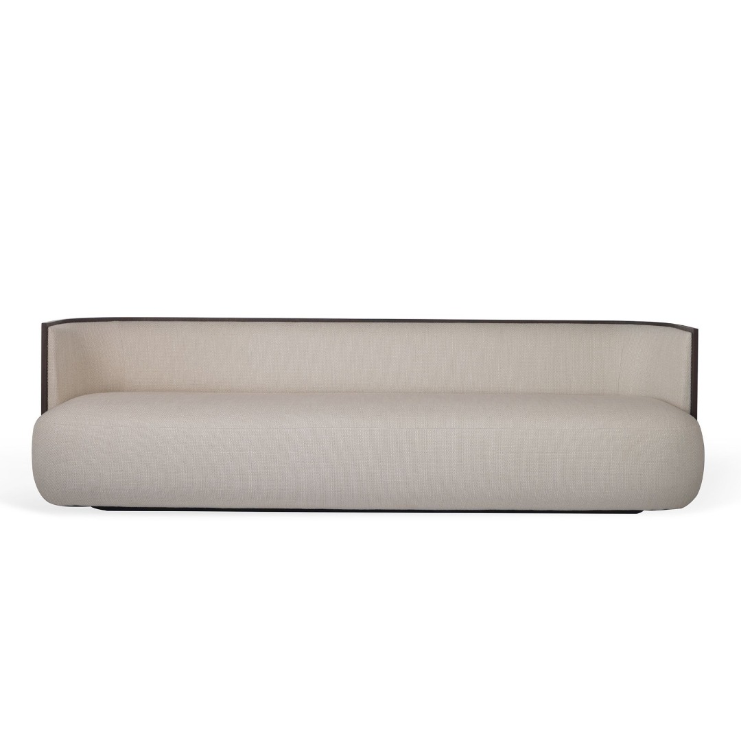 A real show-stopper with its curvy, seductive look, perfectly accentuated by clutching timber back details, Marsilia Sofa attracts attention with its fine, elaborate details, contrasting its bold, monumental posture. Slightly elevated on a circular support, the sofa makes as though a floating object. A delicate upholstery lining supported by cushions buffers the unconventional wooden backrest. Defined by generous proportions and sociable, soft yet architectural qualities, Marsilia Sofa works as a partition and an orientation element in any public or private space when required. An authentic statement piece and timeless classic for every modern interior, Marsilia Armchair is the perfect companion to the sofa. Together they create a harmonious, elegant, and functional space where people gather to communicate and grow with each other. Suitable for formal lounge areas, offices, and open-plan living. The wood veneered backrest has plenty of color options, whereas the upholstery comes in leather and nubuck in addition to fabric.