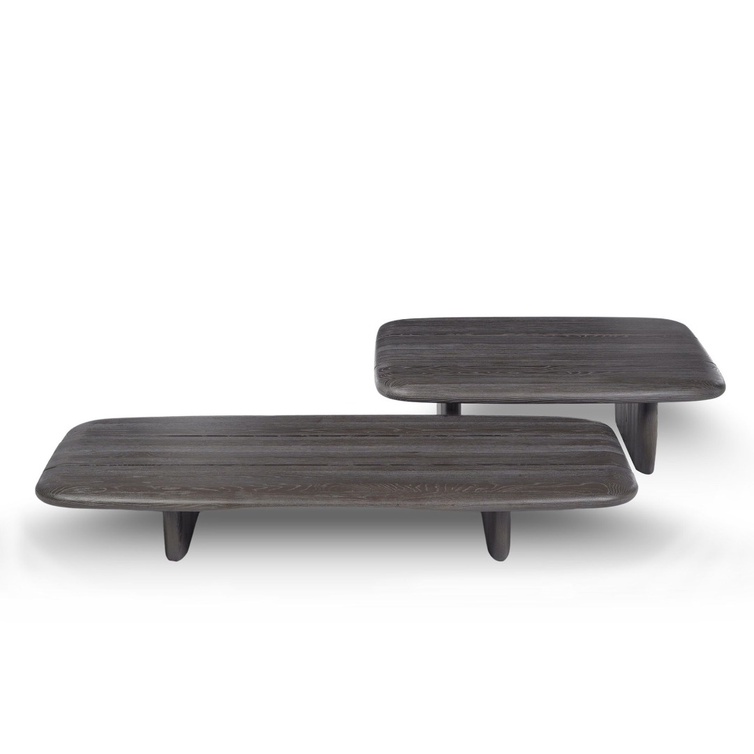 Rejecting the idea of superiority and focusing on the beauty of tiny imperfections of natural existence, Soho Coffee Table follows the noted methods of Wabi-Sabi philosophy with its rounded amorphous forms and the sandblasted surface revealing veins that suggest the sensation of touching the bark of a tree. The solid wood coffee tables are produced in three dissimilar shapes and sizes and come in assorted colors. Soho Coffee Tables complement and counterbalance the strictly cultivated details, rigid edges, and pure geometric forms of the Soho Sofa with their raw texture and bulbous forms.