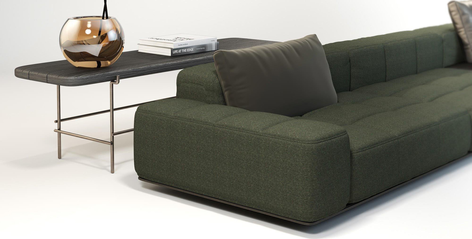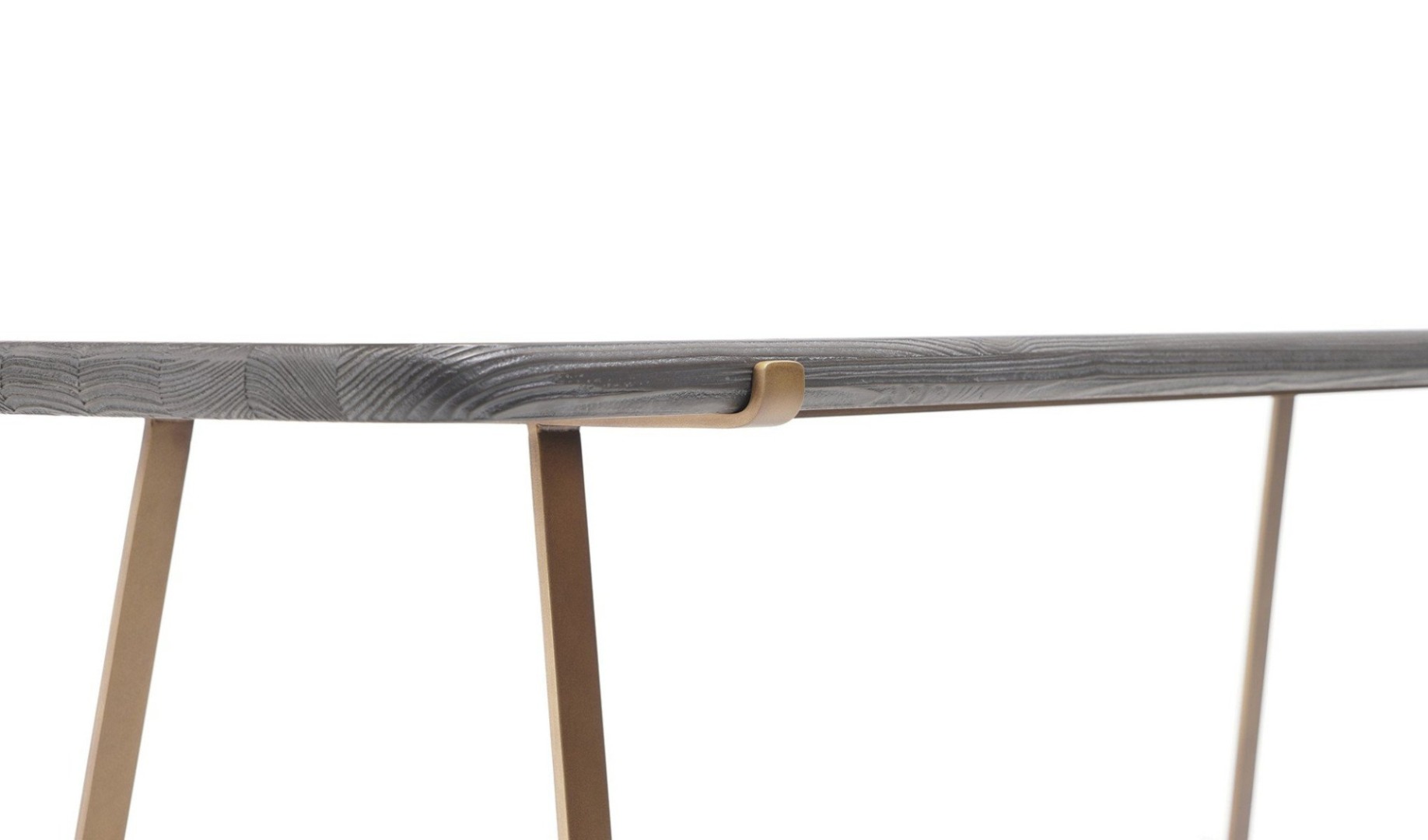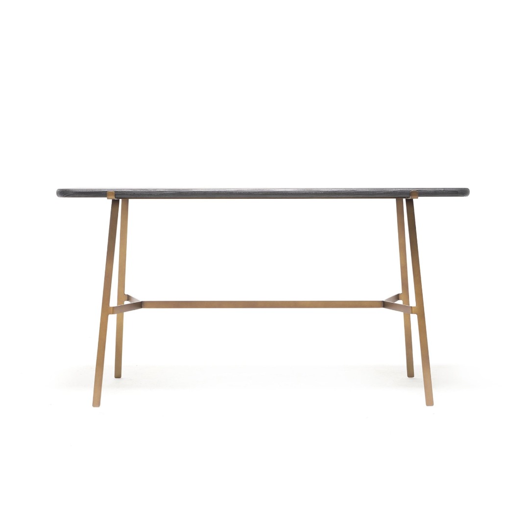 Unveiling the codes of Zen minimalism, the form and posture of Soho Console resemble the coffee tables of the same line. The one-piece solid wood top of the console shares the same raw, sanded surface, bowed edges, and color options as the Soho Coffee Tables but is supported by a slim metal base instead of short, plumpy legs. It appears as a transition element within the Soho Collection and functions as a sofa table as well as an independent piece. When placed behind the Soho Sofa, it aligns with the backrest height of the primary seating module to create a full-functional composition.