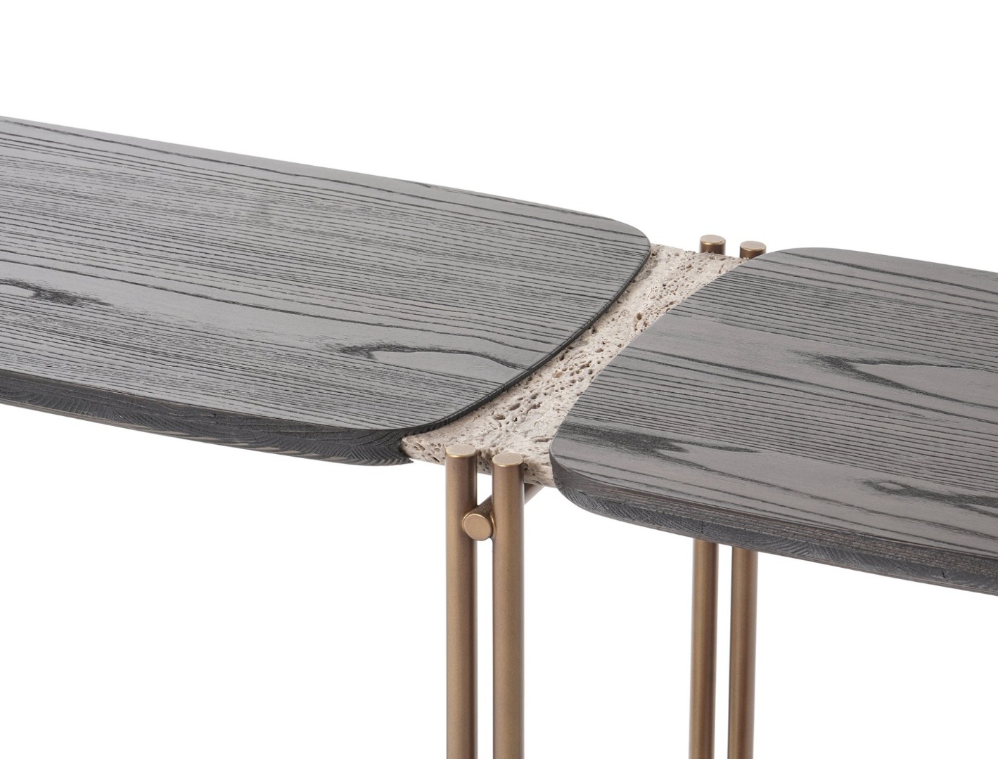 Maurizio Manzoni tarafından tasarlanan Hub Dresser, minimalizm ve işlevselliğin uyumlu bir birleşimidir. Modern iç mekanlara uyum sağlamak için titizlikle tasarlanan bu parça, saten pirinç kaplamalı zarif bir metal çerçeveye sahiptir ve hafif ancak sağlam bir yapı sunar. Çift katmanlı dokulu yüzeyleri, zarif bir estetiği yansıtırken geniş depolama veya sergileme alanı sağlar. Alanınızı yükseltmek için mükemmel bir seçenek olan Hub Dresser, sofistike zanaatkarlığın ve çok yönlü tasarımın bir göstergesidir.