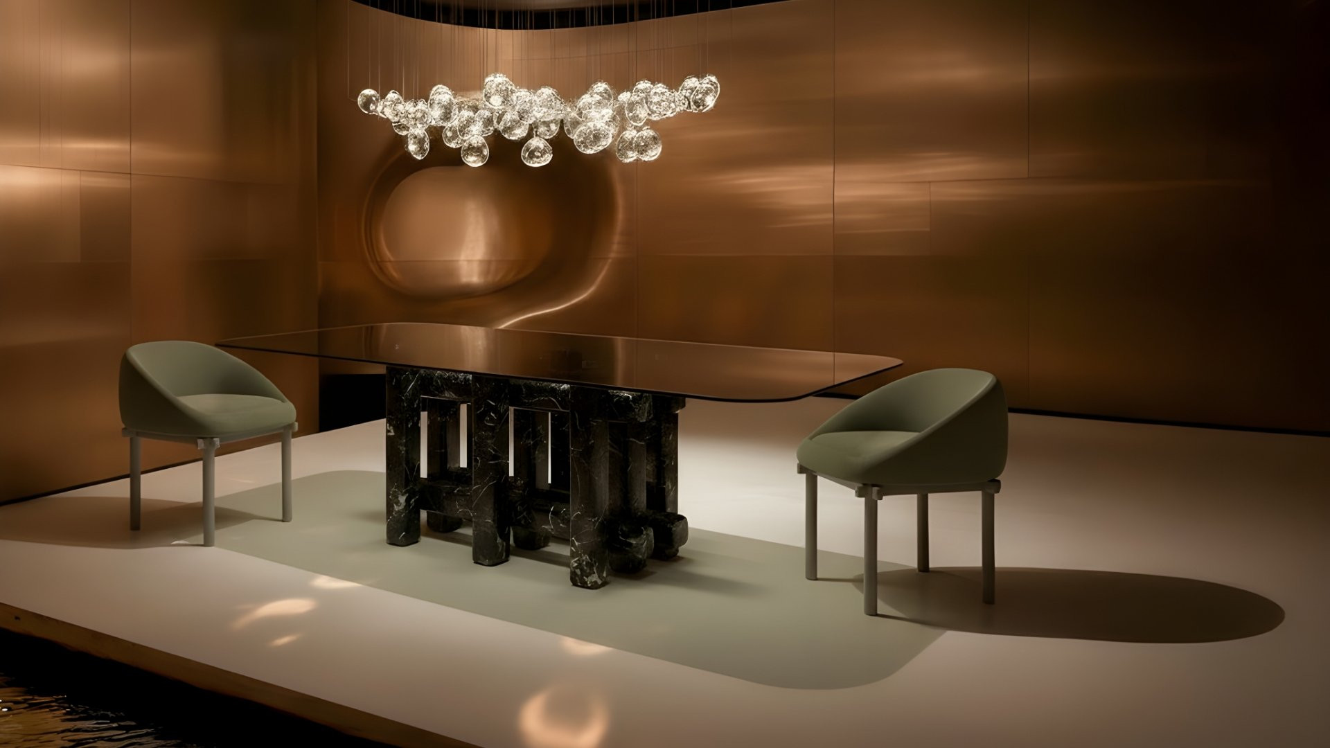 Şeffaf cam tablası ve mermer ayaklarıyla tasarlanan Jetee Masa, suyun üzerinde uzanan bir iskeleyi andıran zarif bir siluet sunar. Camın berraklığı ile mermerin sağlamlığı arasında kurduğu denge, bulunduğu mekâna çağdaş bir karakter kazandırırken; dingin ve huzurlu bir atmosfer yaratır.