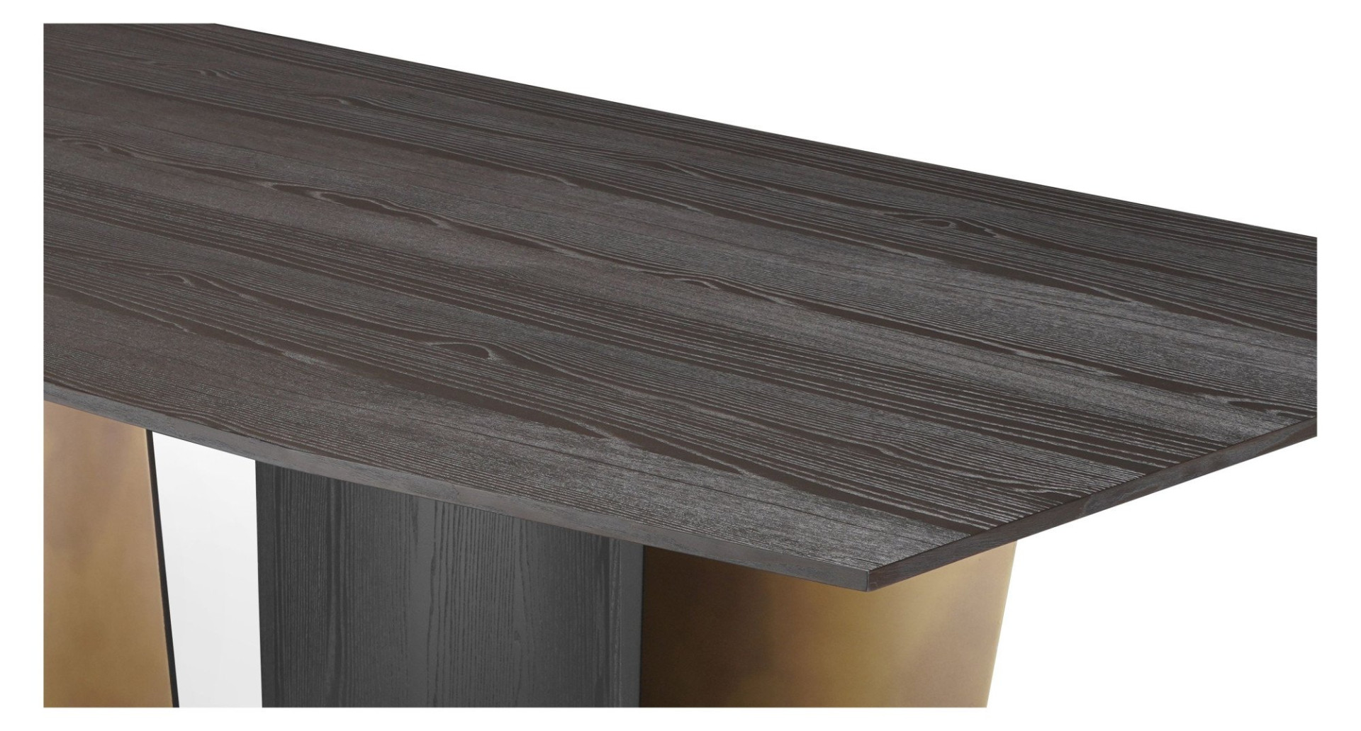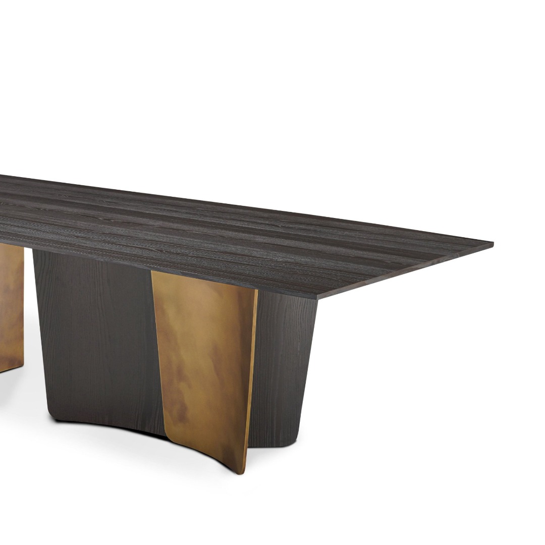 İşlevsel sanatın cesur bir yorumu olan Leaf Masa, aynı zamanda bu koleksiyonun da parlayan yıldızı. İnce, net çizgilere sahip, asimetrik kesimli masa tablası, sahneyi zarif bir şekilde konseptin özünü oluşturan üç parçalı, akışkan ayak tasarımına bırakıyor. Birbirini şiirsel bir tavırla kavrayan soyut yapraklar, ahşap ile metalin; yansıtıcı ve mat yüzeylerin eşsiz, şaşırtıcı uyumunu gözler önüne seriyor.