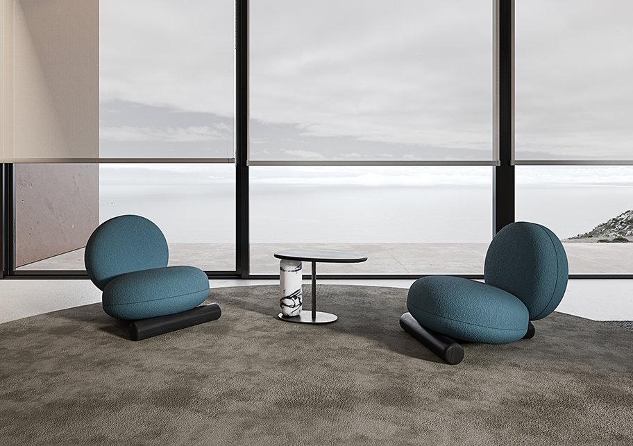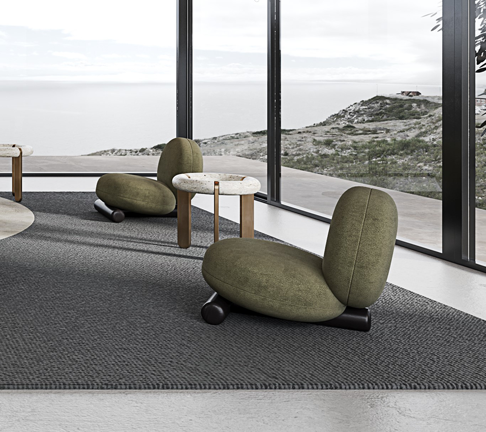 Meri Armchair is an exceptional and creative addition to any living space. Its unique and distinct design showcases a t-shaped cylindrical foot that imbues a touch of modernity and sophistication into any room it’s placed in. The most striking feature of the Meri Armchair is a combination of two round cushions that provide an unparalleled level of comfort. The cushions are designed to offer a soft and supportive seat, which allows you to sink in and relax after a long day. Its innovative design and exceptional comfort make it a piece that will elevate any room and high-quality materials ensure that it will endure the test of time, while its remarkable appearance will make it a standout piece in any space.