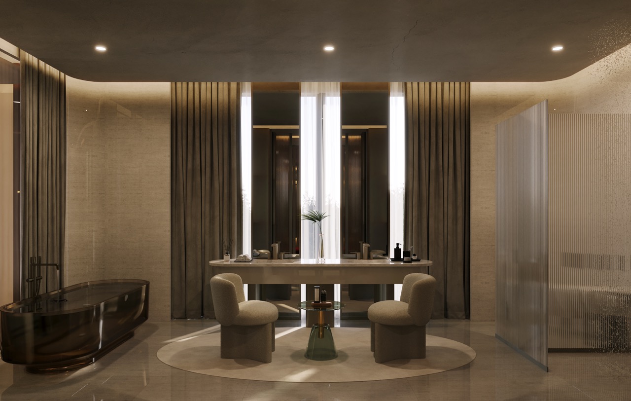 Yatak odaları ve giyinme alanlarında ise; fonksiyonel planlama ile zarif detaylar bir araya getirilmiş, kullanıcı alışkanlıklarına göre özelleştirilebilen dolap sistemleri geliştirilmiştir.