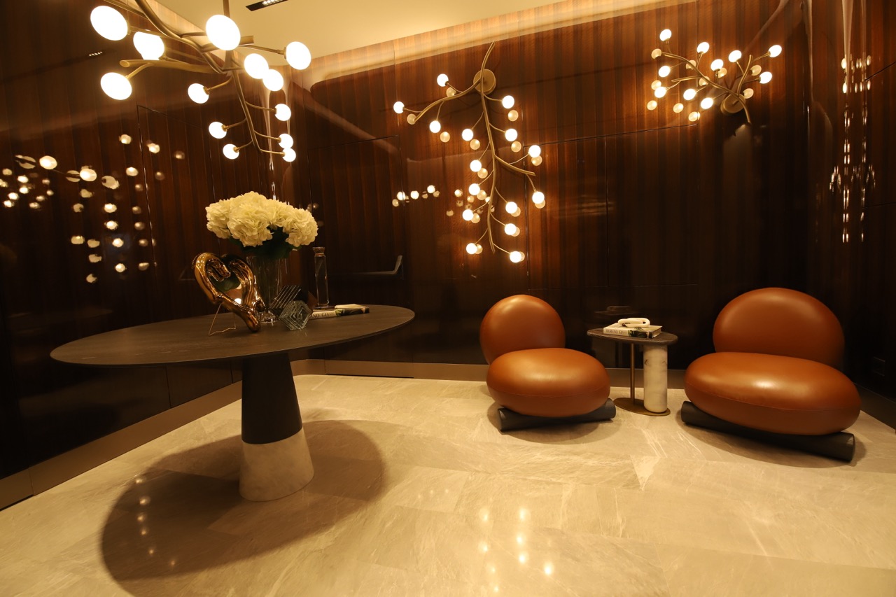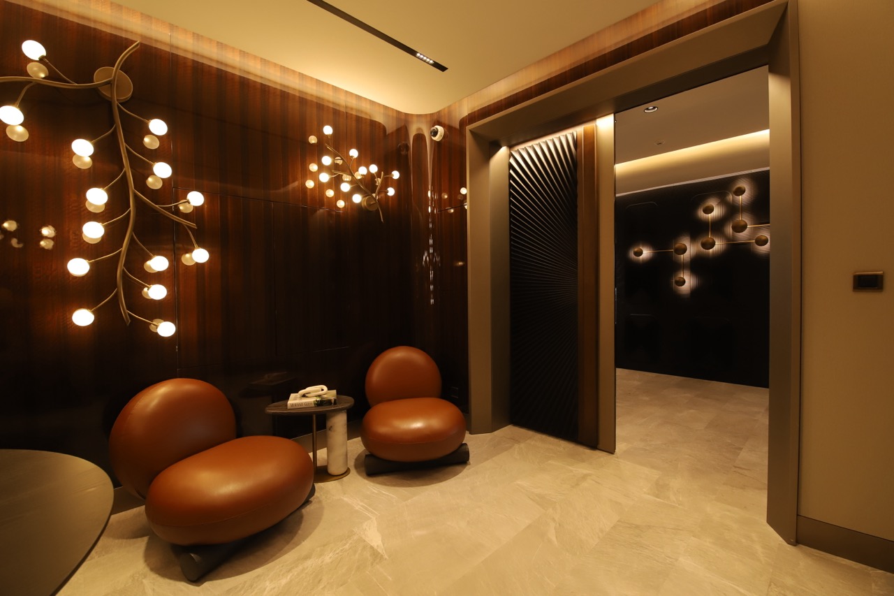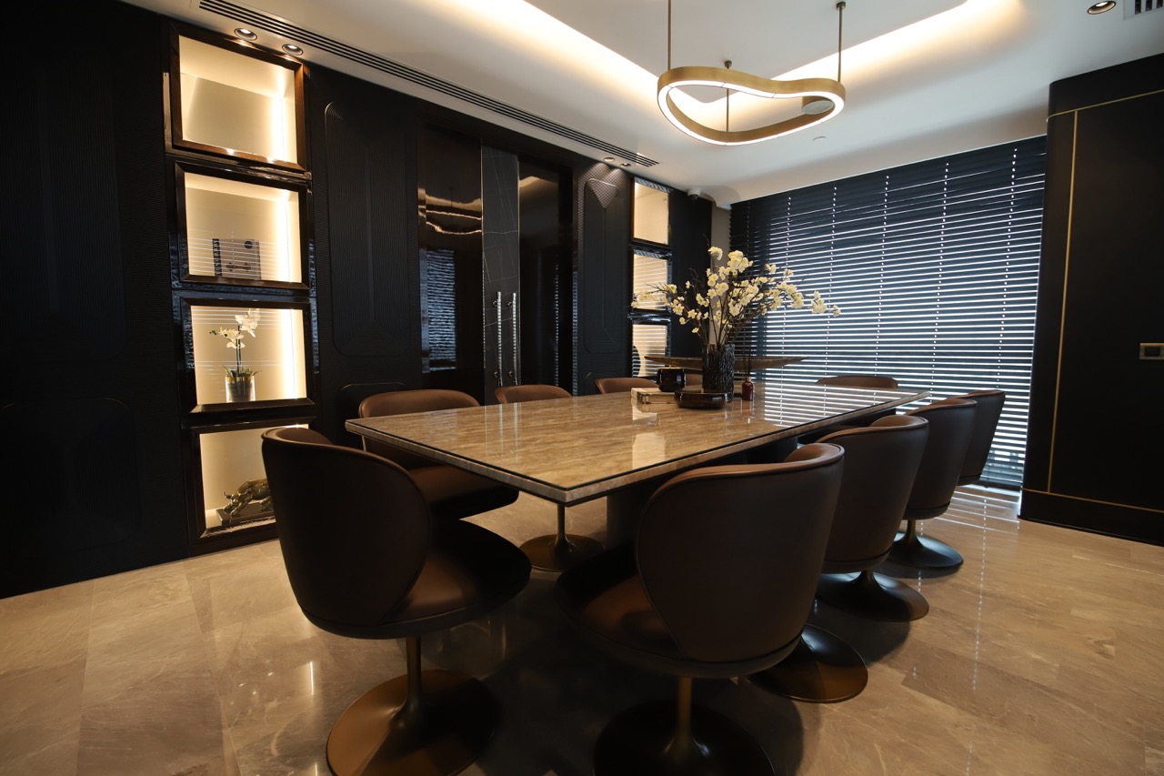 Mermer, mekânın ana malzeme dili olarak güçlü ve zamansız bir etki yaratırken; yüzey geçişleri, mobilya formları ve ışık kurgusu ile dengeli ve rafine bir bütünlük sağlandı. Her tasarım kararı, işlevin ötesinde mekânın kimliğini tanımlayan bir unsur olarak değerlendirildi.