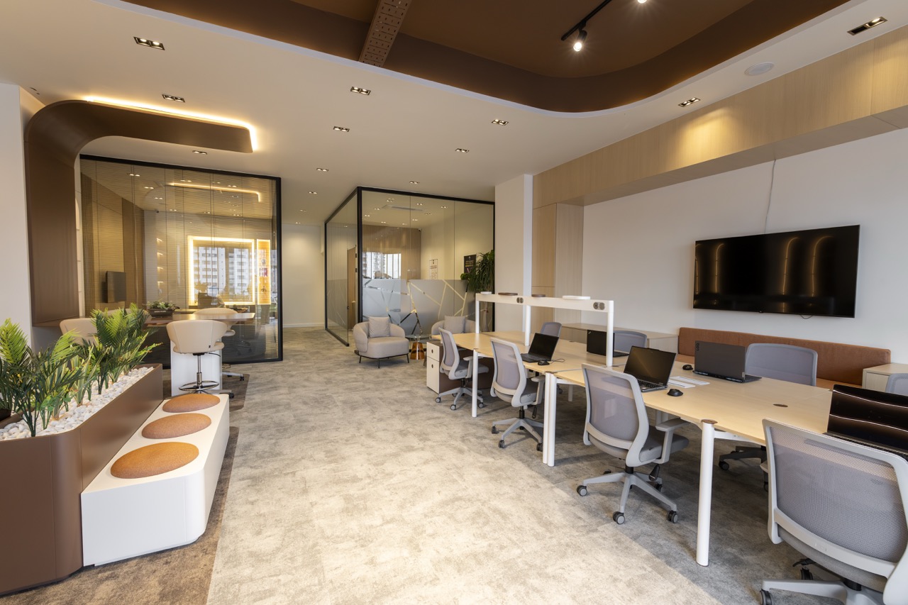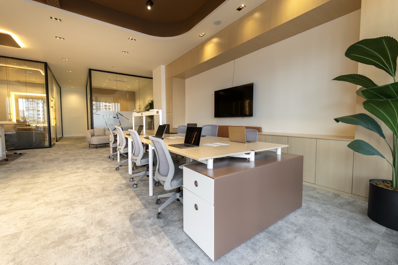 Mobilyalarda seçilen malzemeler, ölçüler ve yüzey detayları; mekânın profesyonel duruşunu güçlendirirken uzun ömürlü kullanım hedefiyle üretildi. Aydınlatma kurgusu ise hem fonksiyonel ihtiyaçları karşılayacak hem de ofisin mimari karakterini vurgulayacak şekilde tasarlandı.
