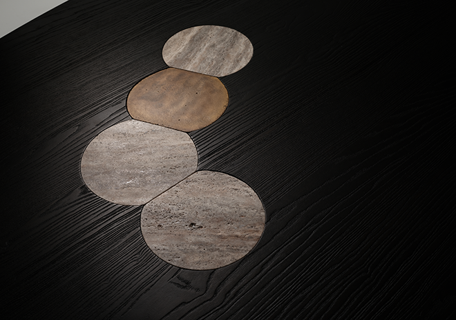 Experience the extraordinary Ross Table designed by the gifted Luca Erba. This stunning table features not one but two unusual feet that are sure to capture any attention. The feet are created by a combination of brass casting and cylindrical marble pieces that come together in a visually remarkable way, both modern and elegant. The Ross Table is made from fine materials that are designed to last. The table top is crafted from wood, providing a sturdy foundation that will stand the test of time. The look is luxurious, not to mention that it is also monumental. Every curve and contour has been carefully considered to create a functional and sculptural piece. The unique foot design is a true testament to the creativity and skill of the Luca Erba.
