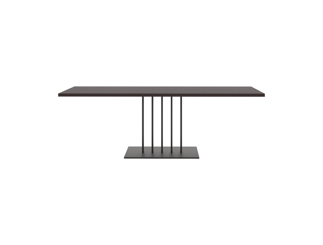 Doğal ahşap kaplama tabla, malzemenin sıcaklığını ve dokusal zenginliğini ön plana çıkarırken; metal ayaklar tasarıma modern, yalın ve yapısal bir karakter kazandırır. Doğal yüzey ile metalin net çizgileri arasındaki kontrast, Tone’un mimari tasarım dilini tanımlar.