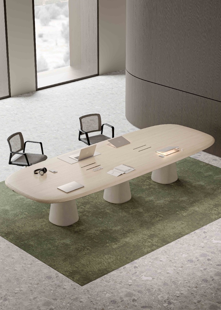 Ugo, uyarlanabilirliğinin temelini oluşturan ikonik bacaklarıyla karakterize edilen kendine özgü ve çok yönlü bir tasarıma sahiptir. Bu bacaklar, tabanda yuvarlak bir kare olarak başlayıp kademeli olarak tepeye doğru tamamen yuvarlaklaşarak dinamik bir görsel çekicilik katan benzersiz bir şekil geçişi sergiliyor. Çeşitli masa üstü tasarımlarıyla birleştirildiğinde, çeşitli ortamlara ve ihtiyaçlara hitap eden sehpalara, konferans masalarına veya bar masalarına dönüşebilirler.